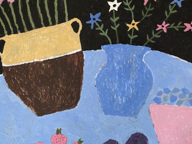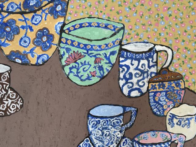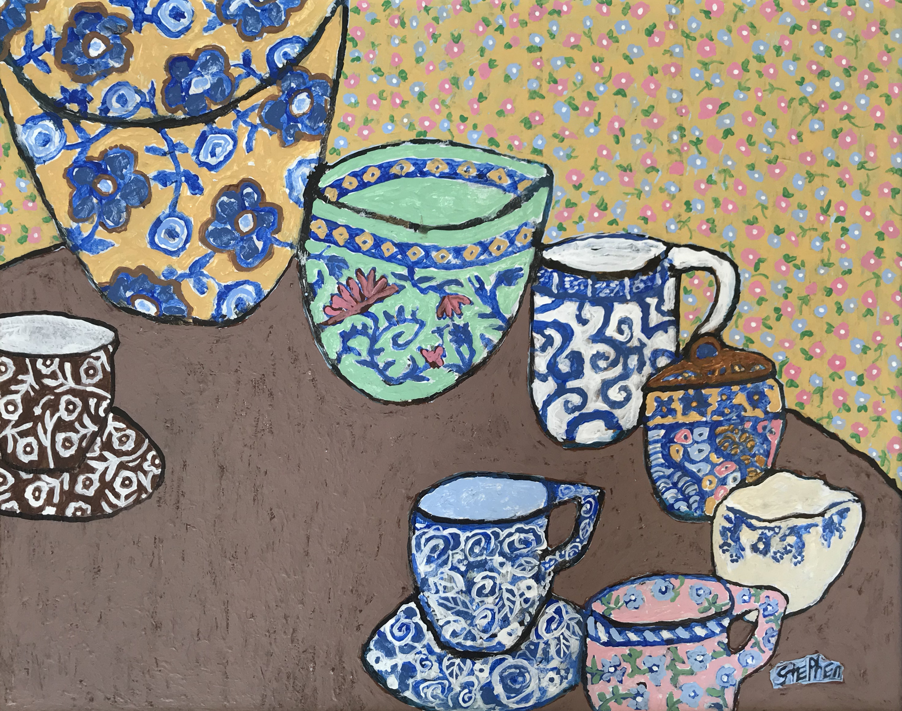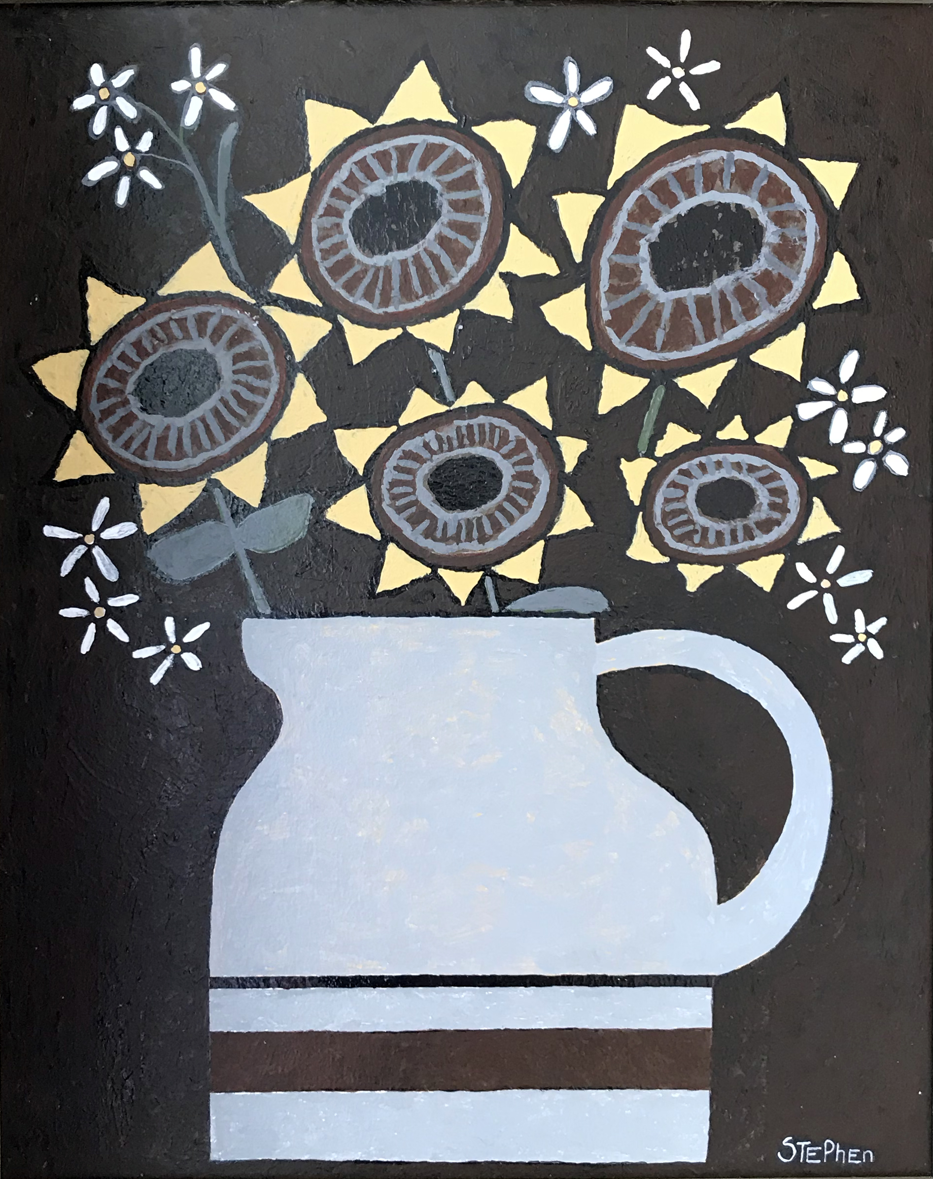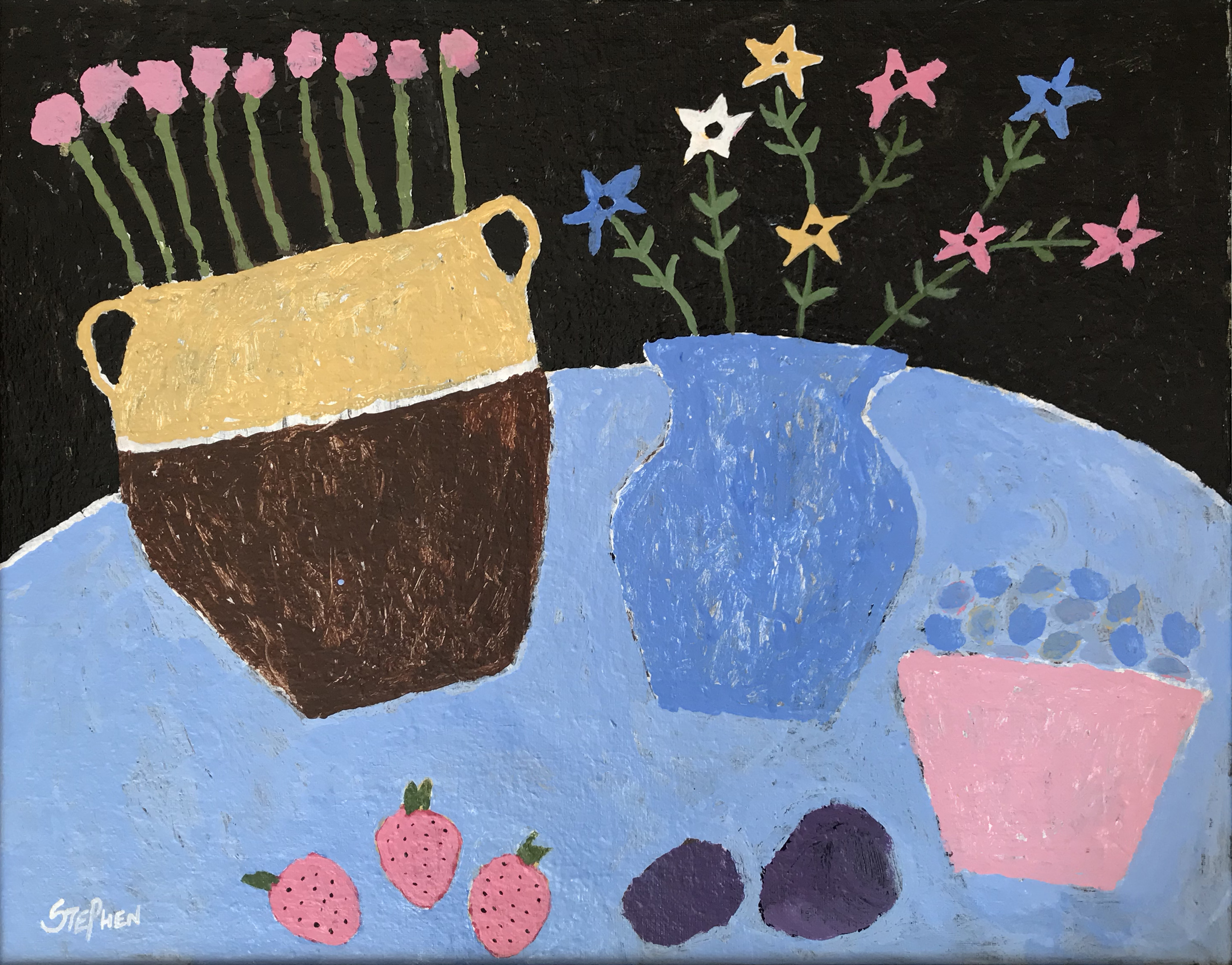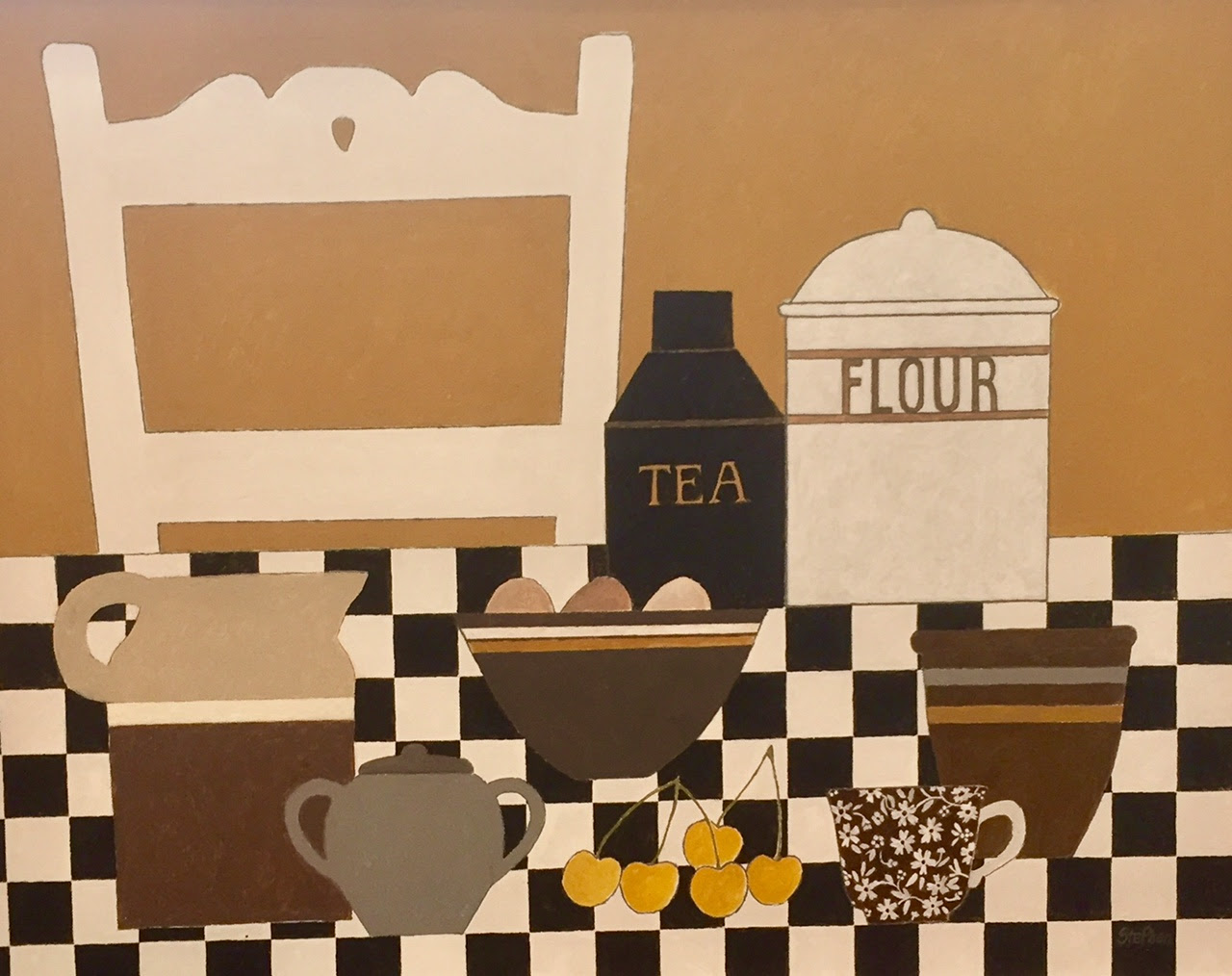 Stephen Tippett began painting as a hobby during his second year of university. After working as a life model for several art schools, he decided to study art formally and was accepted into the Certificate Program at PAFA. After two semesters, he realized he was allergic to oil paint and solvents and retreated to his home studio, using water-based acrylics. Stephen's work harkens to days gone by, depicting farm, village scenes, and scenes of France where he lived for several years. His work is always an interpretation, done in a naive and primitive style with a graphic design quality to it. Stephen is a retired university professor, musician, and published composer.