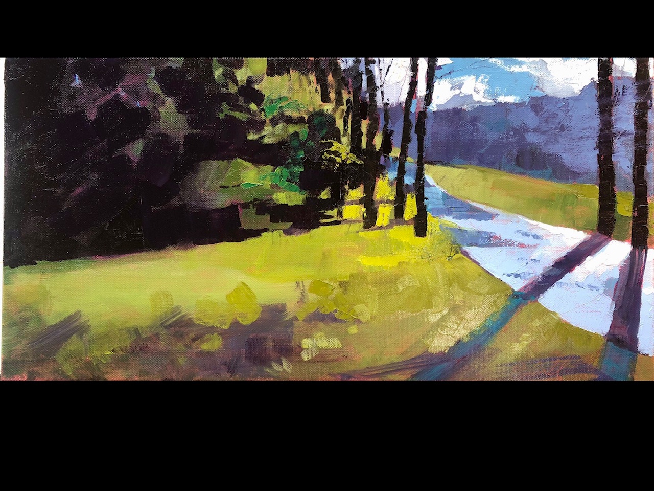 I grew up in a blue-collar neighborhood in a small crowded rowhouse with 5 sisters in Philadelphia PA, I would escape to any open spaces I could reach by foot or bike. Laying down for hours in a field or sitting against a tree to watch the play between sun and shadow. I would dream of my escape to open spaces, where the color of sun and shadow could be captured as easily a taking a breath. My mind constantly painting the scenes before me. I believe this is why I never use a sketch book because I already have a vision of my finished painting in my head even before I put paint to canvas.