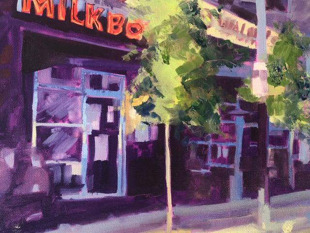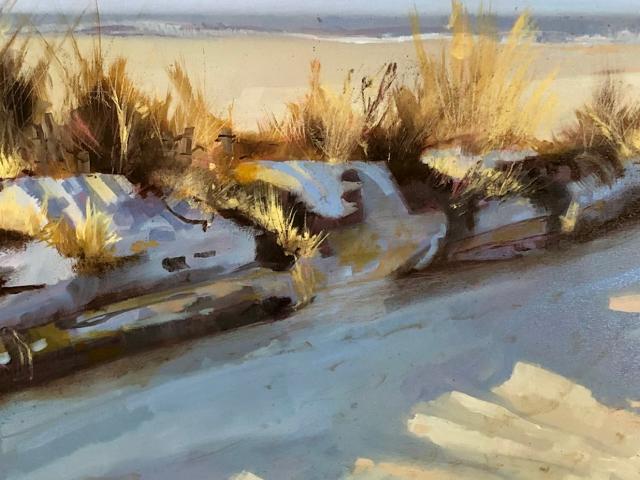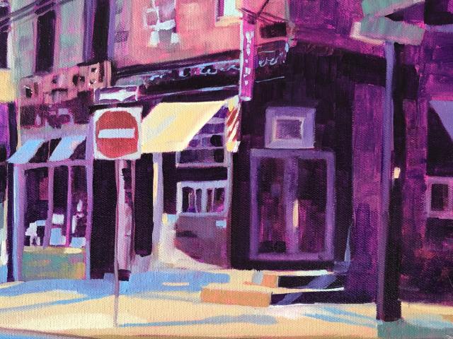 Time passed, my children had grown up and out, I found myself wanting to truly get into the practice of painting more regularly. I began to take classes at The Woodmere Museum. The instructor encouraged my unique style. With this positive reinforcement the paintings that had been locked in my head began to flow like a great flood. I began to enter juried exhibitions with positive results, and this has set free even more creativity. Despite these recent accolades, the art of placing brush to canvas is still about immersing the viewer into my vision of the colors and shapes created by sun and shadow.