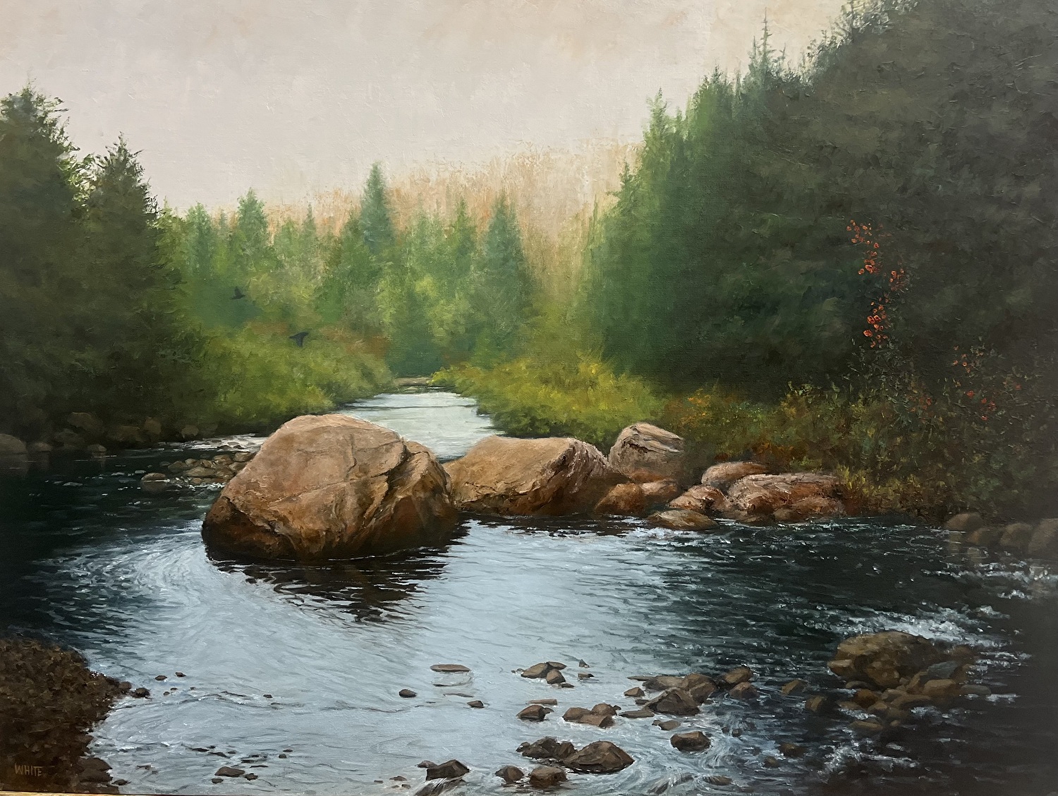 Steven White is an undefined, self-taught, true artist. He is a contemporary tonalist painter. His work, created with brushes and palette knives, is done in a blend of representational and impressionistic style. From dramatic skies to whimsical animals, his paintings capture the beauty of nature and evoke heartfelt emotions and joy. His traditional landscapes of Pennsylvania farms and woodlands, Schuylkill River Heritage areas, and the Adirondack Mountains have awarded him with regional and national recognition.