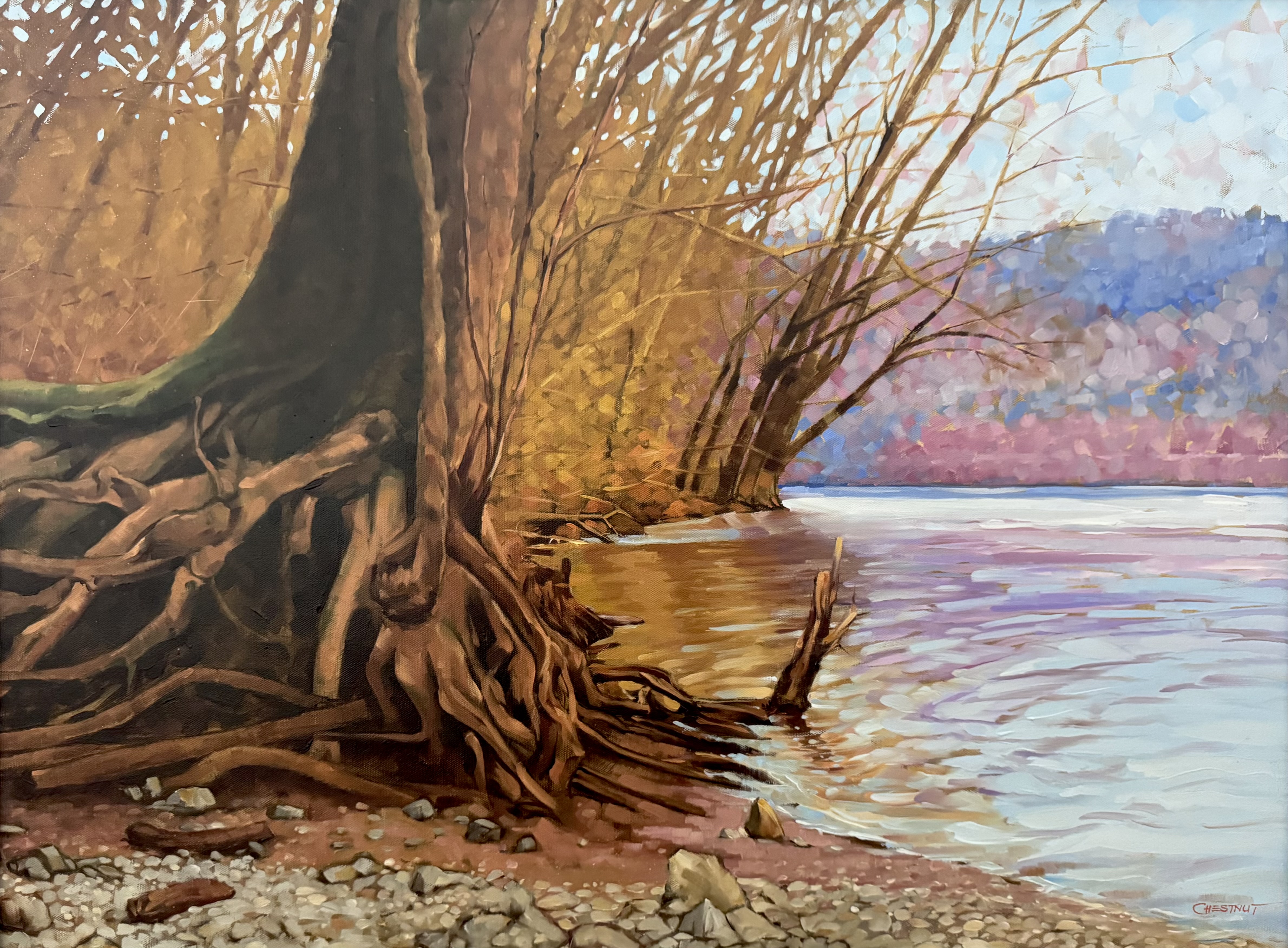 Larry Chestnut is an east coast artist specializing in a manner of painting called premier coup - paintings that are inspired by the scene directly in front of the artist and completed in one sitting without later revisions. The artist combines this style of artwork with plein air painting to achieve spontaneity and to sharpen visual acquity. Larger works requiring research are often done in the studio and the premier coup techniques and philosophy are still employed when doing still life paintings in the studio. Major influences are the American Impressionists, the Ashcan School and the New Hope School of Painting, specifically, artist like Edward Redfield, Robert Henri, Childe Hassam, Theo Robinson, Sargent and Homer. Contemporary artists like Liz Ruggles, Bob Saxon, Don Stone and Richard Schmid have been major influences on the style and technique of the artist.
