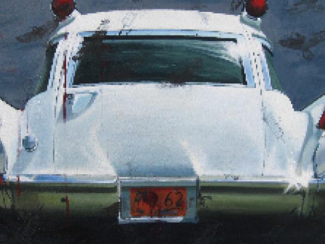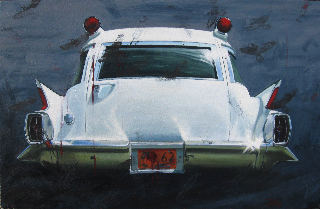 Gwendolyn Chambers, an award-winning School of Visual Arts graduate, who lives in NYC began her current body of work in 2002 shortly after the purchase of her first car - a 1973 Dodge Dart. Her layered style incorporates symbols or images that tie into the history of the car, location or personality of the person to whom it belongs. The cars take on transcendental personality – levitating and driving away.